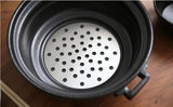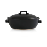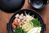 A ceramic pot with excellent heat conductivity that can be used directly on fire and in oven. A metal plate is included for induction cooktops. Made in Japan.