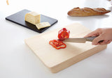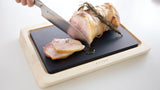 The solution to overflowing juice when serving roasted meat dishes! Using the resin and Shiraki wood cutting boards together allows for mess-free food prep and serving, or they can be used separately, too. The resin cutting board is heat resistant to 70°C and cold resistant to -30°C, dishwasher safe. The wood cutting board is hand-wash only. Made in Japan.