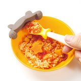 Attach the animal-shaped "catcher" to the edge of a round bowl/plate (diameter 9-18cm) to make it easier for children to practice eating with spoon. Hygienic design keeps the spoon tip from touching the surface when placed on the table. Dishwasher safe.