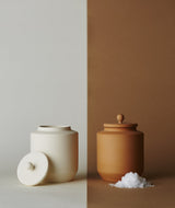 Having one of the six oldest kilns in Japan, Tokoname in Aichi Prefecture has been famous for its pottery since late 1100s. A storage container designed exclusively for salt was handmade in the very city. By leaving the containers unglazed, the natural texture of clay maintains the humidity level at exactly what salt needs.