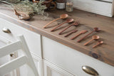 Wooden utensils have low thermal conductivity, and they don't chemically react with acidic foods or scratch plates and bowls as their metal counterparts do — not to mention that they complement your dining table so beautifully! Each piece is made of natural wood and therefore has its own unique colour and texture variation. Imported.
