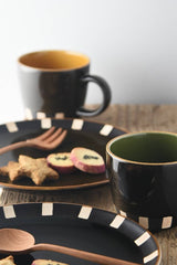 Simple design with a striped matte rim, so the attention stays on the delicious food, but tablescape goal is achieved. Microwave and dishwasher safe. Mino ware. Made in Japan.
