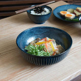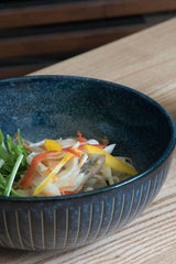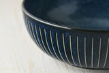 With blue and white lines radiating from the center, this intricate design of the Tokusa pattern is inspired by the reeds of a type of grass grown in Japan - the "ten grass". From the Edo period till today, Tokusa and its many variations have stayed one of the most loved patterns for Japanese ceramics. Great size for serving or as an individual ramen bowl. Stacks up nicely for easy storage. Due to the firing technique used, each bowl will be a slightly different colour & finish. Microwave and dishwasher safe. Mino ware. Made in Japan.