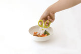 Cut noodles, vegetables, meat etc. from the dining table with ease. The curved design prevents food from slipping from the scissors. When placed on the table, the edge is designed to not touch the surface for hygiene reasons. Blades can be disassembled for thorough cleaning. Carrying case included. Hand wash only.