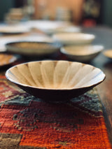 A deep plate ideal for dishes with light sauces. Dishwasher safe but hand-wash recommended. Mino ware. Made in Japan.