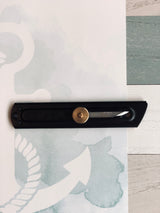 Compact cutout knife with outstanding sharpness. Brass knob can secure or release the steel sliding blade, allowing for adjustable length. Good for general woodworking and craft use. Made in Japan.