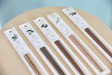 Simply elegant chopsticks made from 5 different types of fruit trees, coated with 100% natural beeswax. Each piece of natural wood varies in colour and texture. Made in Japan.
