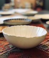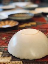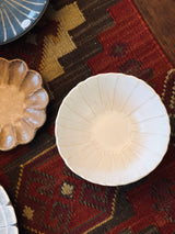 Unlike any ordinary bowls, this handmade piece is carved and scraped into petal shape. Dishwasher safe but hand-wash recommended due to its irregular shape. Mino ware. Made in Japan.
