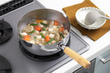 A classic demonstration of Japanese craftsmanship through its hand hammered aesthetics and ultra fast heating for the ease of daily use. Wooden handle gives a good grip even with wet hands. The double-spout design makes it easy to transfer the contents. Hand wash recommended due to the wooden handle and knob. Made in Japan.
